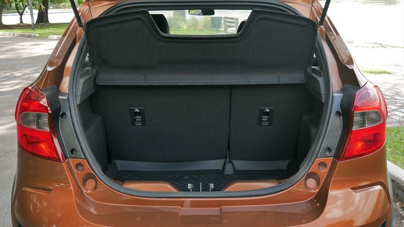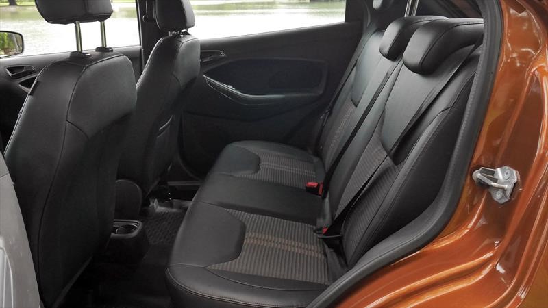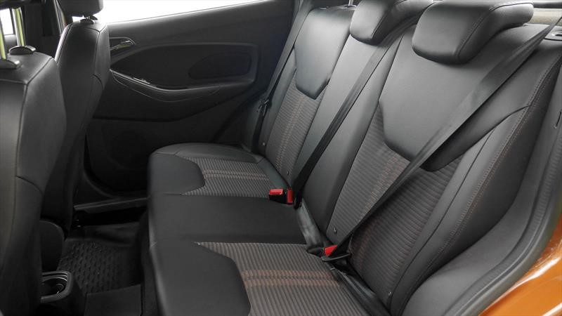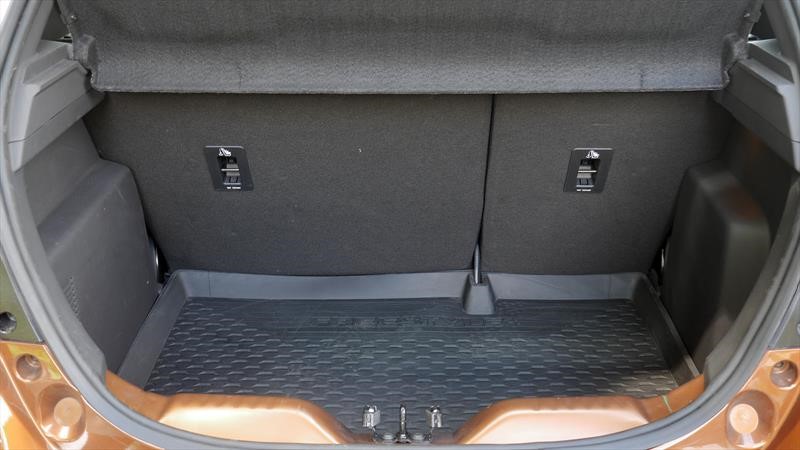 El espacio en los asientos traseros es más que bueno para los menos de 4 metros que mide el Ford Ka y el baúl con 257 litros es justo. Una novedad del Ka Freestyle es que tiene un piso removible en goma con bordes elevados para poder colocar objetos sucios y mojados. Solo recordá que al sacarlo es fácil derramar el líquido. Debajo tenemos un auxilio 175/65 R15 que solo te permite ir a 80 km/h porque las ruedas titulares son 185/60 R15… o se les fue la mano afuera, o le están pifiando (y por muy poco) en el baúl.