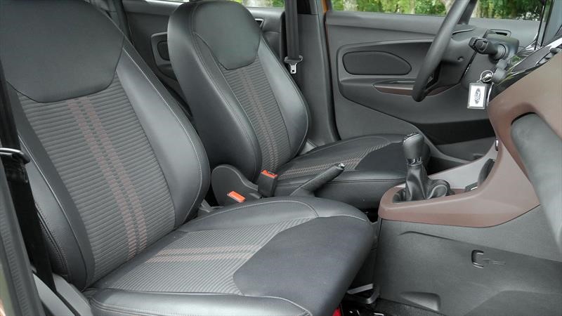 Puertas adentro, lo más notorio del Ka Freestyle es que gran parte del tablero, decorados de contrapuertas y tapizados se visten en color marrón. Además de esto, conservan los elementos vistos en el rediseño del 2018 con la pantalla del SYNC III en el centro del tablero, doble entrada USB (así uno puede espejar el teléfono y otro cargarlo al mismo tiempo), tapizados tela/cuero y una dotación completa para el segmento que podés revisar junto con los precios en el Catálogo de Autocosmos.