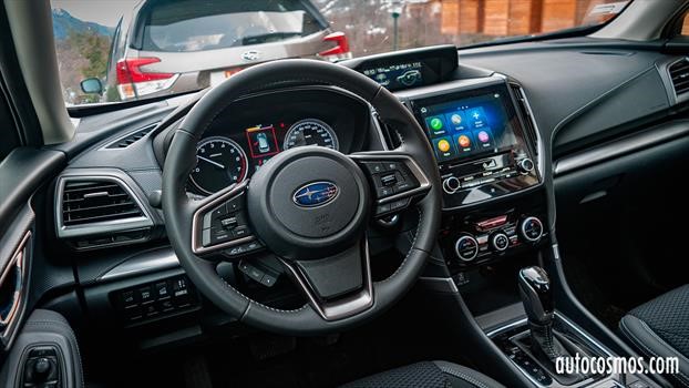No hay insertos de madera ni colores cálidos, acá se busca lo moderno y sobrio, un salto cualitativo con respecto a la Forester anterior, muy austera al lado de este modelo. Gracias a las ventanillas altas y al diseño de los pilares, la visibilidad hacia el exterior sigue siendo de las mejores del segmento, lo que también ayuda a que sea un habitáculo muy luminoso.