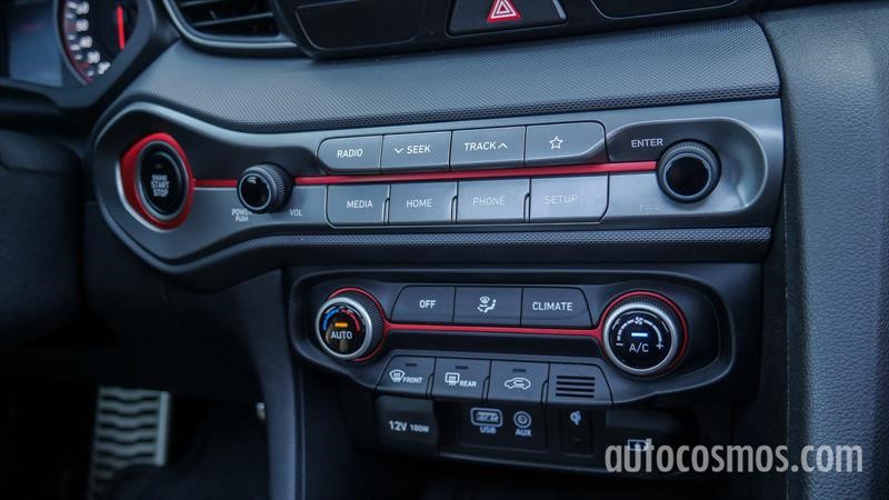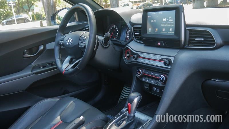 La cabina del Hyundai Veloster reúne sobriedad, deportividad y sensación de calidad. Curiosamente, en el tablero no hay plásticos suaves al tacto, pero los materiales se sienten sólidos y de calidad con un interesante trabajo de texturas. Al negro omnipresente, se le suman acentos en rojo distribuidos en pequeñas dosis por el volante, pomo de cambios, estéreo y asientos.