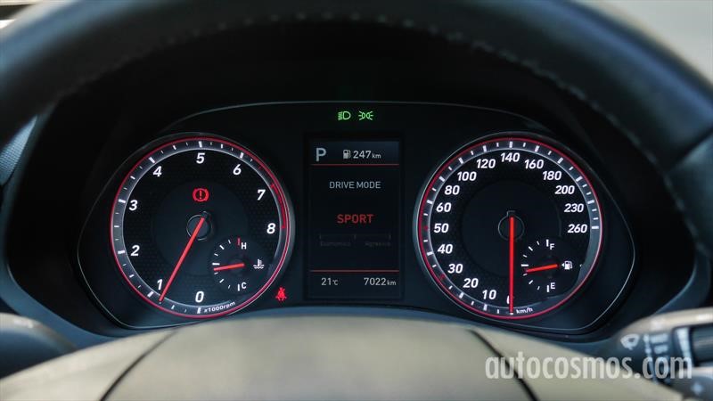 ¿Qué tal va? El Veloster 1.6 T Ultimate es prácticamente un proyectil. La marca declara 7,1 segundos para pasar de 0 a 100, pero me interesó más el 80 – 120 que en mis mediciones fue de 5,30 segundos en D y de 4,40 segundos colocando 3º con el sistema secuencial (ya sea desde la palanca como desde las levas al volante). Como referencia tomemos a la prueba del 308 S GT de 225 CV y caja AT8 al que le cronometré 6,7 segundos de D y 4,95s en Sport para el 80 – 120 km/h.
