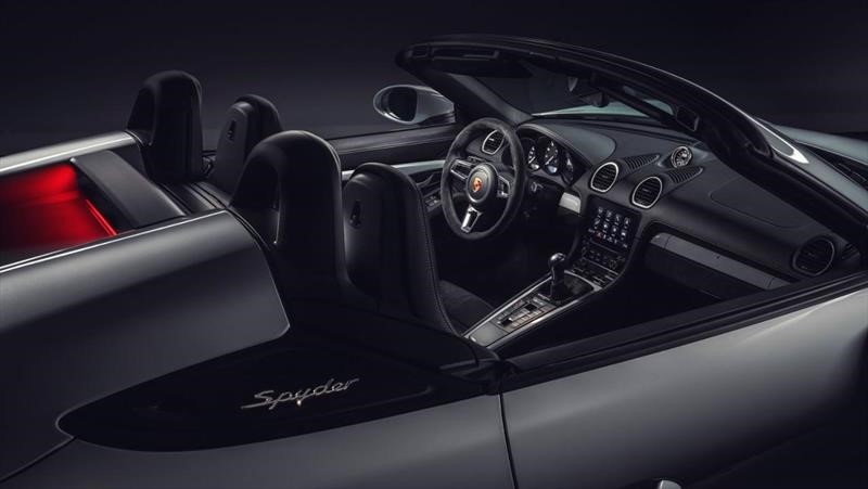 En el Boxster Spyder, el alerón es sustituido por un spoiler activo que se levanta automáticamente al superar los 120 km/h. Gracias al nuevo difusor, este es el primer Boxster en generar realmente carga aerodinámica sobre el eje trasero.
