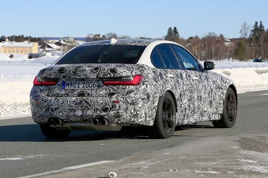 Otras fotos espía del nuevo BMW M3 siendo probado con camuflaje muestran que la parte posterior incorpora una cuádruple salida de escapes cromados cuyo silenciador aparenta el mismo problema visual que el del M2 Competition. El diseño de las llantas es reminiscente al de los actuales M3 y M4 CS, aunque bien podrían haber sido instaladas solo para prueba de desarrollo o transporte.