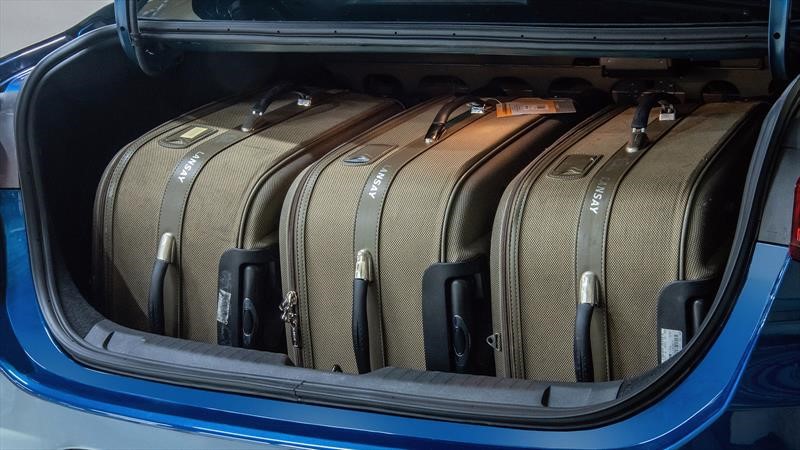 En el interior aparece el infaltable cliché pistero, las costuras rojas, que viene acompañadas por decorados en ese tono. Dato curioso, la pedalera no es metálica.