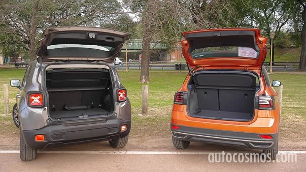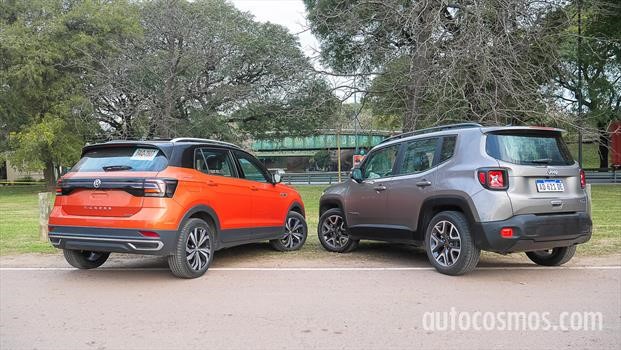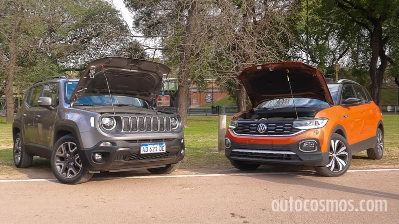 Vamos por las diferencias destacadas (el resto podés analizarlo vos usando el Comparador de Autocosmos). El T-Cross tiene apertura y encendido “sin llaves”, encendido automático de luces, y cuadro de instrumentos 100% digital, ambos tienen climatizador, pero en el Renegade es de dos vías, ambos tienen cámara de estacionamiento y sensores traseros, el VW suma los delanteros, ambos tienen control de crucero, el Jeep tiene freno de mano eléctrico, mientras que el otro es por palanca.