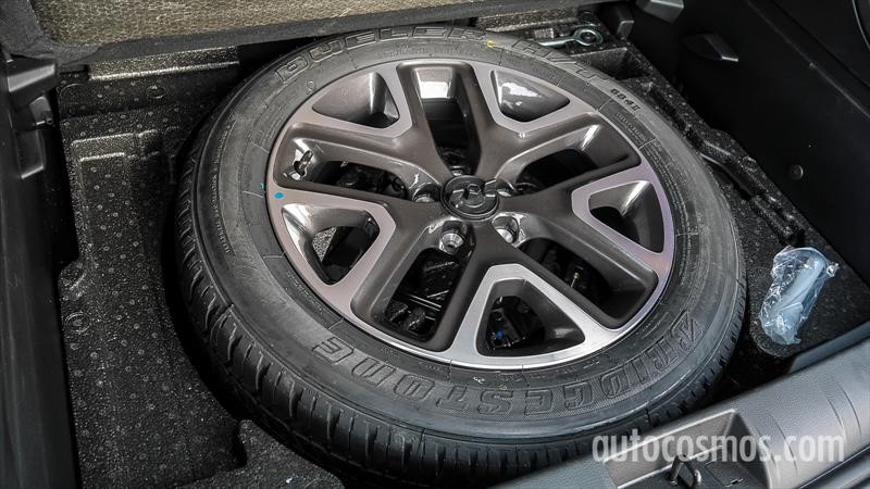Los baúles tienen capacidades similares, solo que el de la T-Cross tiene un piso doble que se puede bajar aumentando la capacidad. Lamentablemente debajo esconde un auxilio que no es de la misma medida que las ruedas titulares. Acá Jeep le da un cross a VW con una rueda homogénea, tanto en medidas como en llanta.