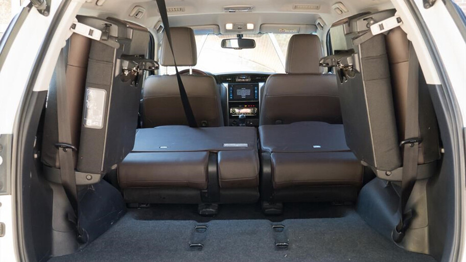 - El SW4 la tercera fila de asientos se pliega hacia los laterales y se ata con una soga, lo que roba espacio de capacidad de carga.