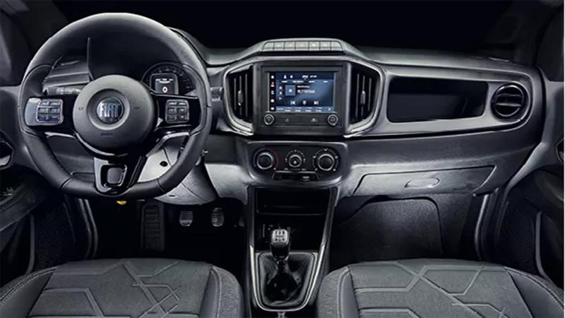Estrenada en la nueva Strada, esta nueva imagen deja el nombre en inmensas letras y coloca las cuatro barras pequeñas en un costado de la parrilla con la primera en rojo, las del medio en blanco y la última en verde, colores de la bandera del país europeo.