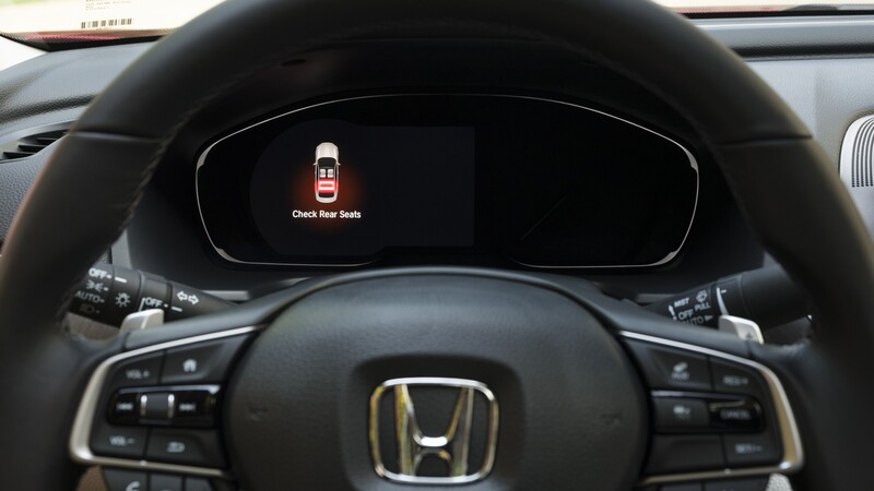 Para la actualización, todos los Accord incorporan un nuevo aviso dedicado al asiento trasero, más precisamente para hacernos recordar si hay algún chico atrás. Además, suma otro recordatorio centrado en la colocación del cinturón de seguridad por parte de los pasajeros de atrás.