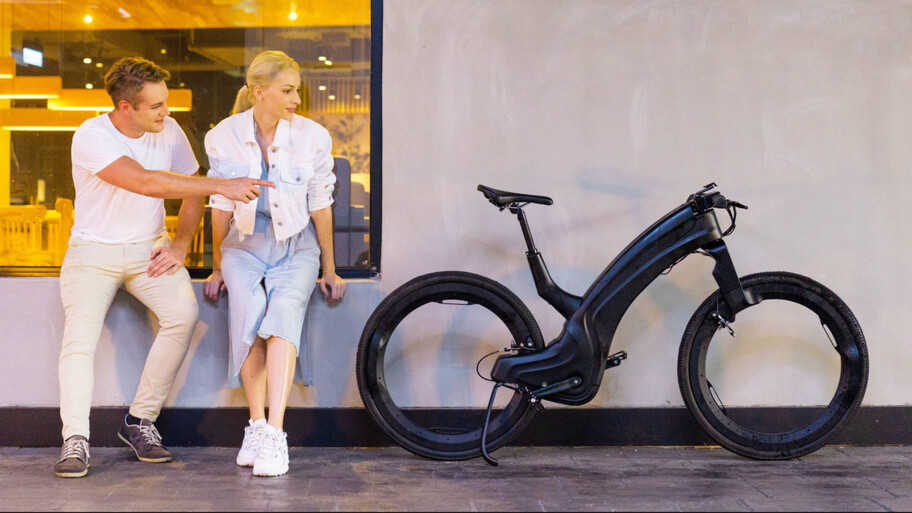 La Reevo está diseñada para la conducción urbana y para realizar viajes cortos. El cuadro está hecho de aleación de aluminio y su horquilla delantera está unida a la rueda por un solo lado (el derecho), pero lo más llamativo de su diseño son sus ruedas, que no incluyen buje central ni rayos y cuyo diámetro es de 27,5''. Además, aguantan un peso máximo de 120 kilos.